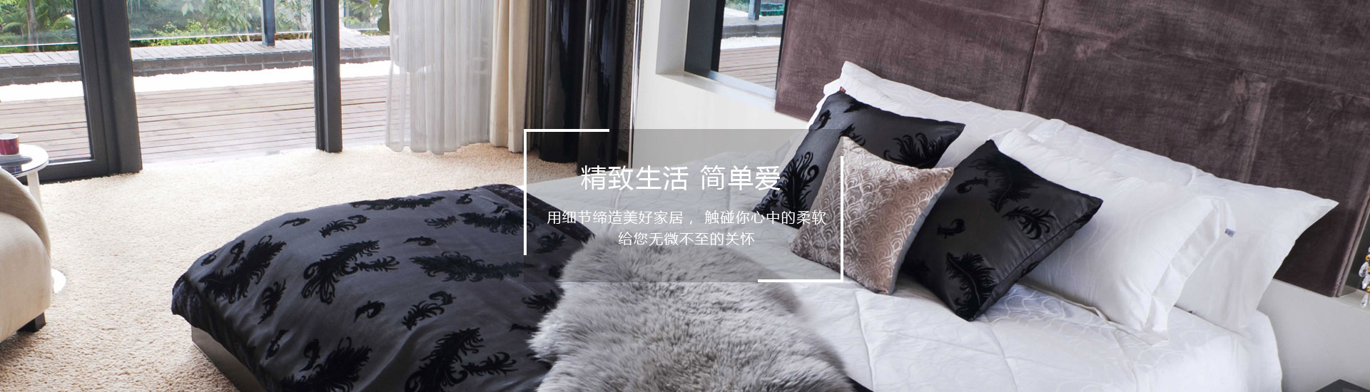家纺依靠科技进步、倡导绿色消费,让消费者充分 体会到品牌文化所带来的无穷魅力,专业致力于功能性 家纺,产品有真丝系列、婚庆系列、时尚系列